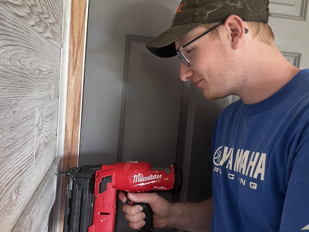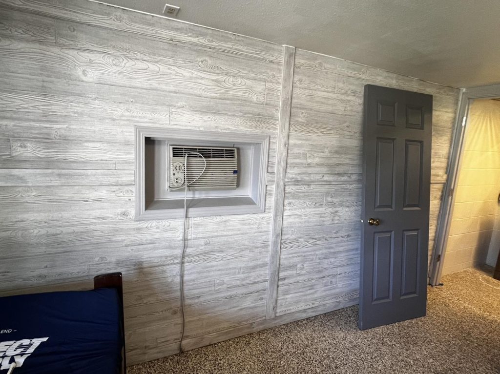 Paneled walls, trim, and….. air conditioning! Renovation of the Chateau (aka Brown house) at Glad Tidings Bible Camp #projects4missions #gladtidingsbiblecamp